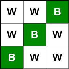 Input: picture = [["W","W","B"],["W","B","W"],["B","W","W"]]