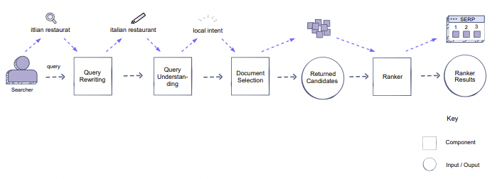 'Itlian Restaurant' 을 검색하는 쿼리를 요청했을때, 그 쿼리에 형편없이 단어가 만들어지거나 스펠링이 다를 수 있다. 그래서 검색어를 수정하는 재작성 구성요소 쿼리가 필요하다.